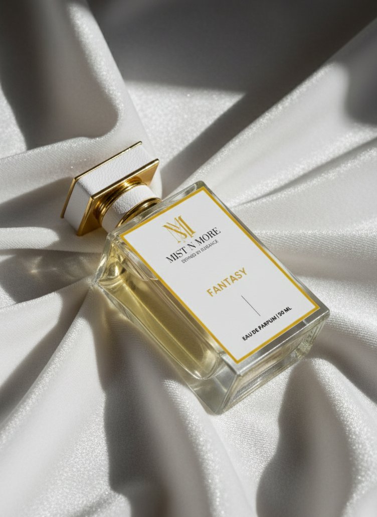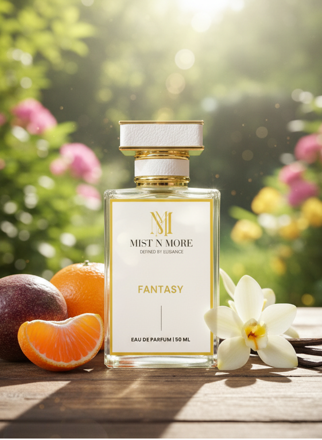 FANTASY a vibrant fruity-floral fragrance, blending juicy Passionfruit, Grapefruit, and Strawberry with a heart of Peony, Jasmine, and Vanilla Orchid, resting on a warm, sensual base of Musk, Woody Notes, and Oakmoss. A Fragrance that last up to 10 hours.